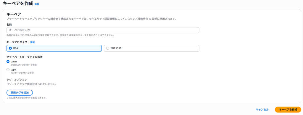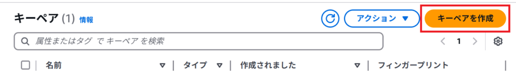 以下の画面出てくるのでキーペアを作成しましょう。この先は、AWSコンソールが教えてくれるのでそれに従って作ってもらえたらいいんじゃないかと…