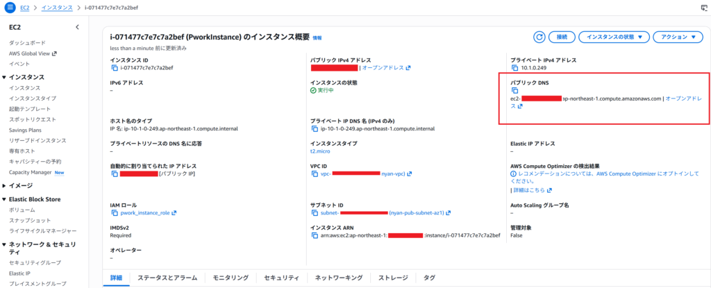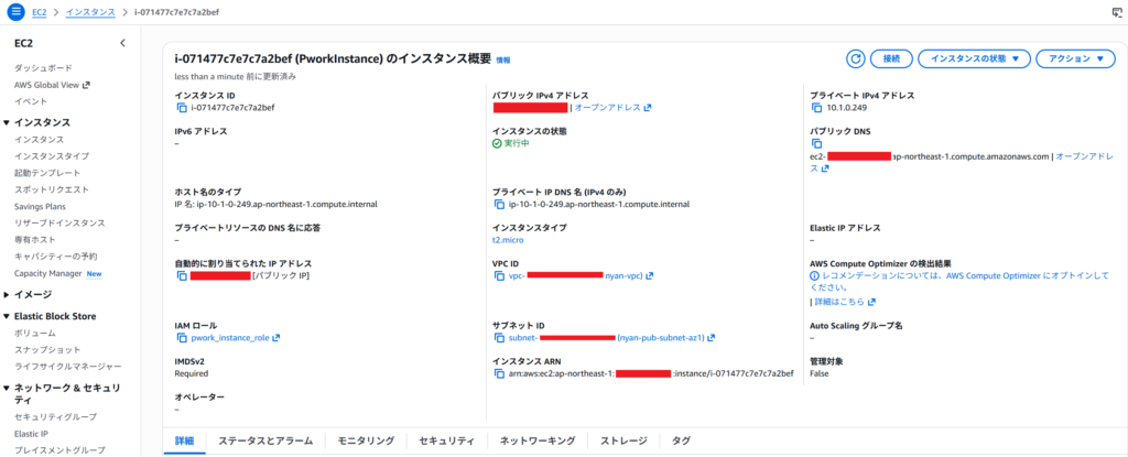 次はEC2インスタンス。見せられないところは赤い四角で隠させてもらってます。