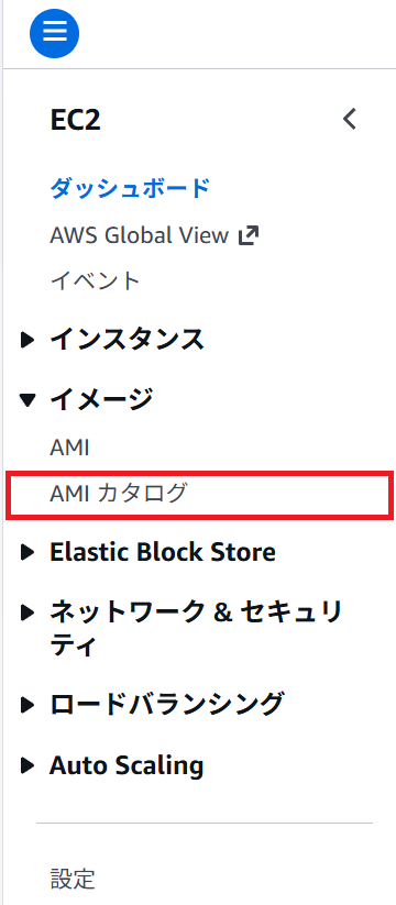どこかのイメージを元に、自分でカスタマイズしたイメージも作れますが、今回はAWSさんが公開しているイメージを利用しようと思います。